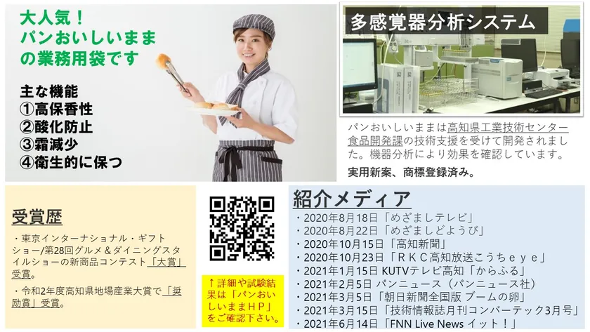 パンおいしいままは高知県工業技術センター食品開発課の技術支援を受けて開発されました