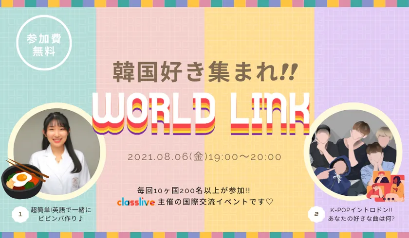 韓国好き集まれ!国内最大級規模の オンライン国際交流イベント 「WORLD LINK」8月6日(金)19時スタート