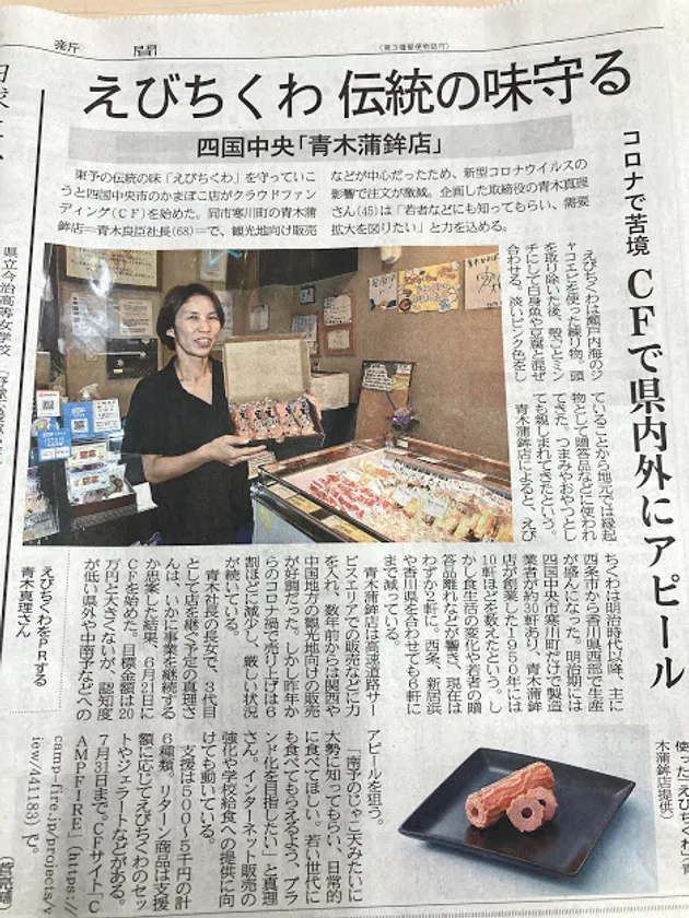 クラウドファンディング目標金額達成!! 『えひめ東予地方伝統の味を守りたい』 プロジェクトは多くのご支援を頂き地元でも話題に。