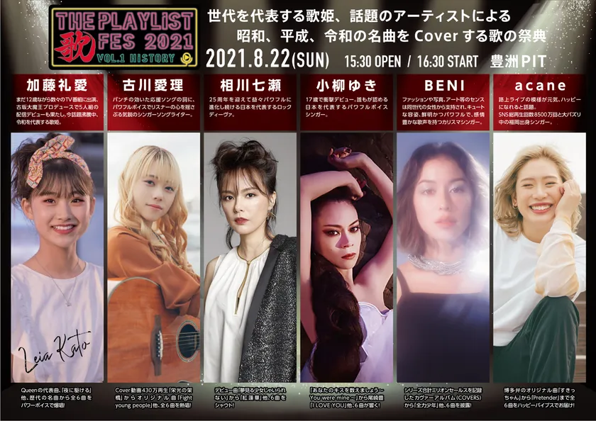世代を代表する歌姫、話題のアーティストによる 昭和、平成、令和の名曲をCoverする歌の祭典 「THE PLAYLIST 歌FES 2021 ~Vol.1 HISTORY~」開催