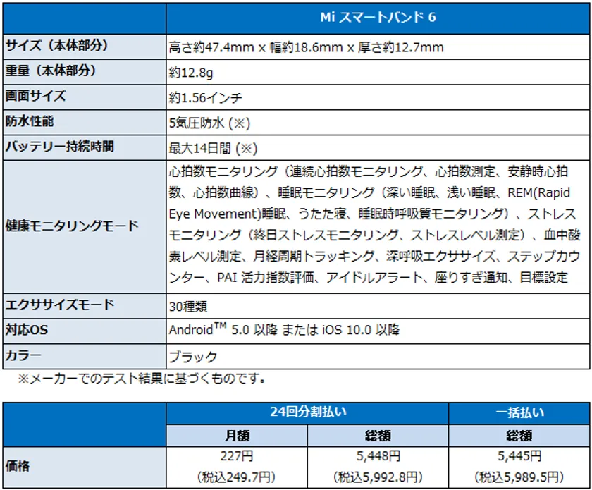 ビッグローブ株式会社(本社:東京都品川区、代表取締役社長:有泉 健、以下BIGLOBE)は、Xiaomi製「Mi スマートバンド 6」とOPPO製「OPPO Band Style」の2機種のスマートバンドを7月16日より提供開始します。本製品は、BIGLOBEモバイルのスマートフォンと同時に購入いただけます。(スマートバンド単体での購入はできません)