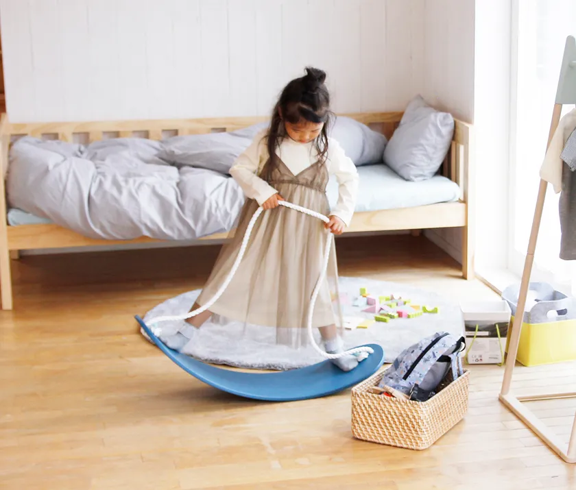 i-Lab.Fline(アイラボエフライン)シリーズではテーブルやイスなど様々な子ども家具を展開しています。同シリーズとして“玩具(おもちゃ)”であるバランスボードを開発することで、家具との一体感が生まれ、インテリアになじむキッズ用バランスボードに仕上げることができました。