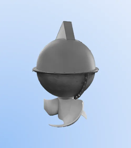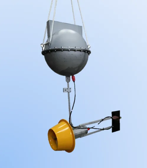 ブイと発電部が分離したタイプで、タービンの周りにディフューザーを付けていま