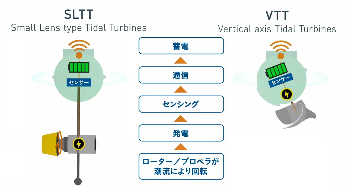 (左 SLTT (Small Lens type Tidal Turbines)、