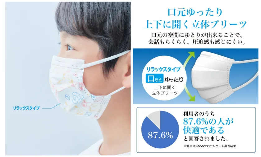 ・上下に開く立体プリーツで口元に空間を確保 会話もしやすいマスク