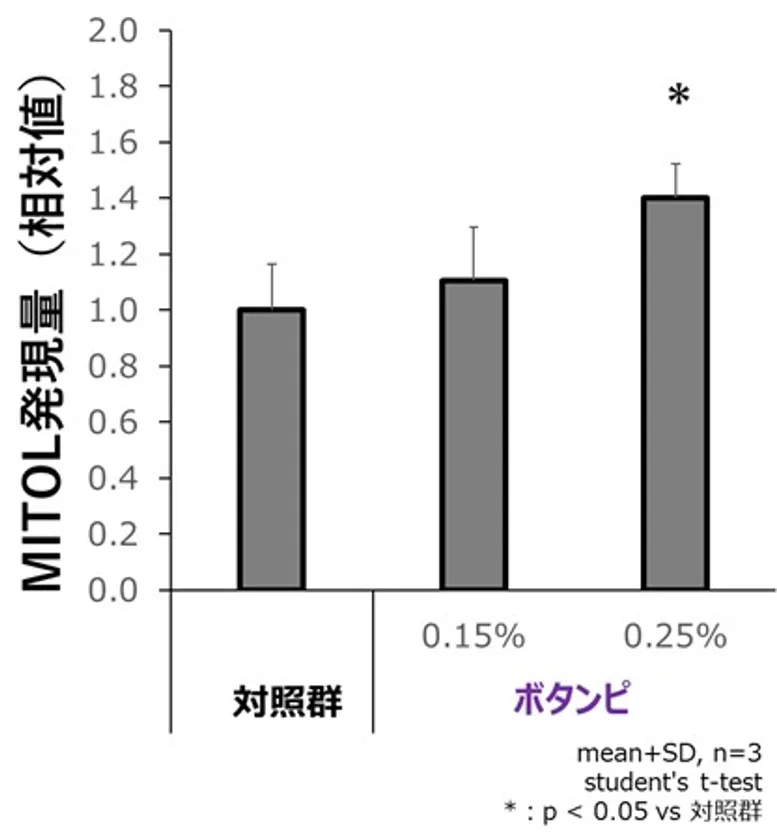図5.「ボタンピエキス」×「ブラックリバースペプチド1」によるMITOL発現上昇