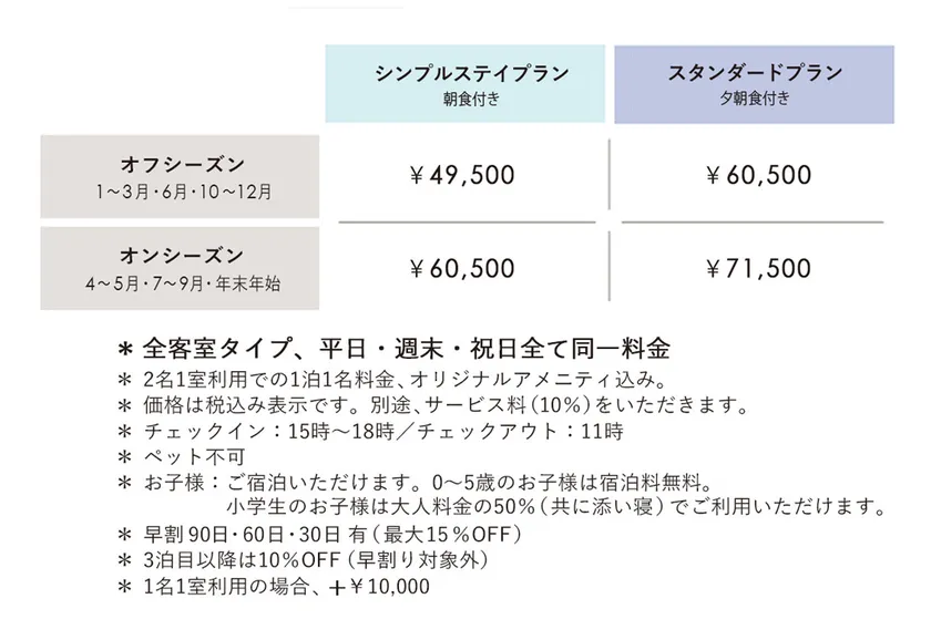 ※1名料金/2名利用時、シンプルステイプラン(オフシーズン)