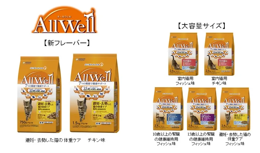 猫用健康機能食『AllWell』から 「避妊・去勢した猫の体重ケア」に人気のチキン味追加、 まとめ買いニーズに対応した大容量サイズ 新発売