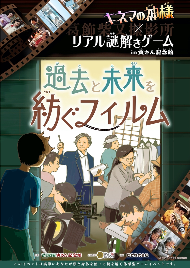 このイベントは、山田洋次監督の映画「キネマの神様」の8月6日公開を記念したコラボ企画として、監督ゆかりの寅さん記念館で開催されるリアル謎解きゲームです。「キネマの神様」をテーマにした限定ストーリーに沿って、ノスタルジックな寅さん記念館の散策を楽しむことができます。ファミリーで楽しんで頂けるよう、3密回避できる周遊型イベントを企画しました。同館では夏休みイベントとして2019年から2年連続で謎解きゲームを開催し、ファミリー層から「館内をゲーム感覚で巡ることが出来る」と好評であったため今回で第3弾の開催となります。