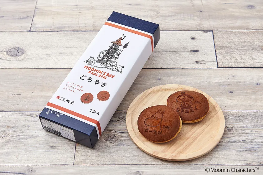 横浜文明堂伝統の銘菓にムーミンの焼印が入ったどらやきは、「ムーミンの日」限定商品。ムーミンの焼印が入ったどらやきが3個、リトルミイの焼印が入ったどらやきが2個入っています。