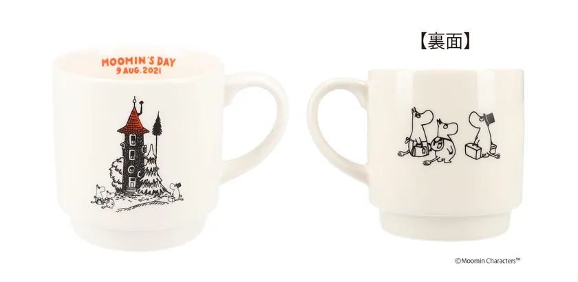 表面には、ムーミンの日デザインが、裏面にはムーミンファミリーがデザインされているスタッキングマグ カップ。重ねて収納しやすいのも嬉しいポイントです。