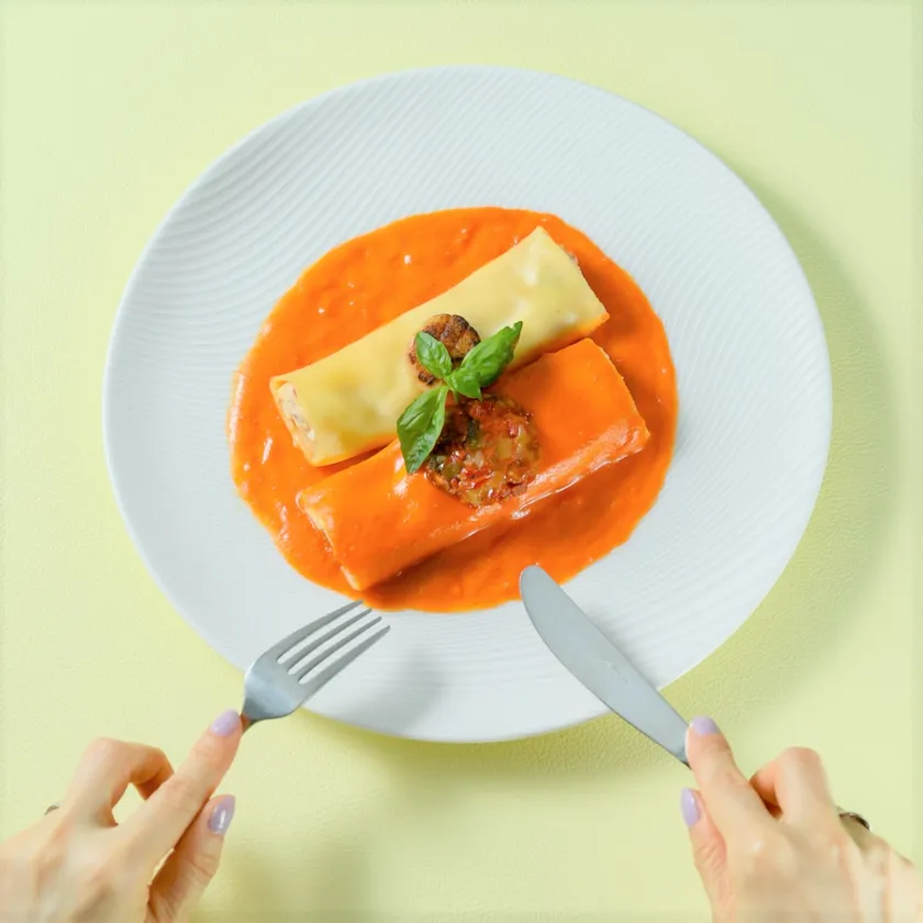 帆立とチョリソーのカンネローニ ピキーリョソース