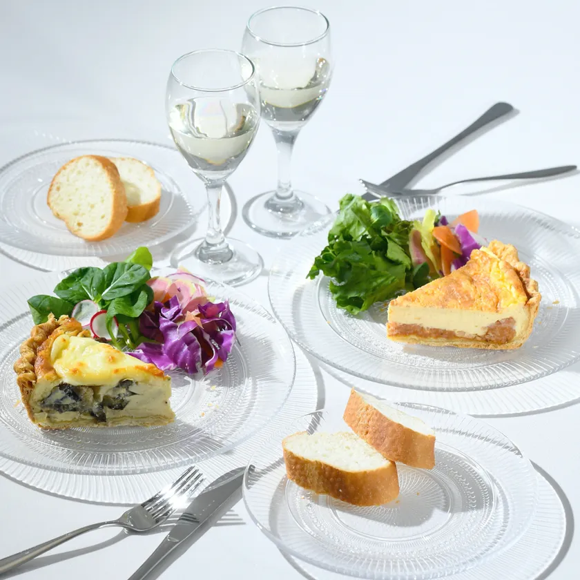 ハルーミチーズとナスのキッシュ【左】 セート風トマトとタコのキッシュ【右】