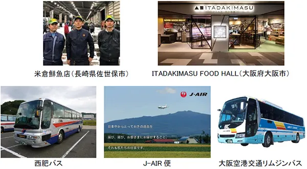 有限会社米倉鮮魚店(本社:長崎県佐世保市、代表取締役:米倉 洋一郎)、西肥自動車株式会社本社:長崎県佐世保市、代表取締役社長:山口 健二)、大阪空港交通株式会社(本社:大阪府豊中市、代表取締役社長:武田 浩彦)、株式会社 Double Doors(本社:大阪市浪速区、代表取締役社長:杉本 正人)、株式会社ジェイエア(本社:大阪府池田市、代表取締役社長:宍倉 幸雄)は、共同で、長崎県佐世保市の朝〆鮮魚を昼すぎに大阪府大阪市の飲食店まで輸送する実証実験を実施します。