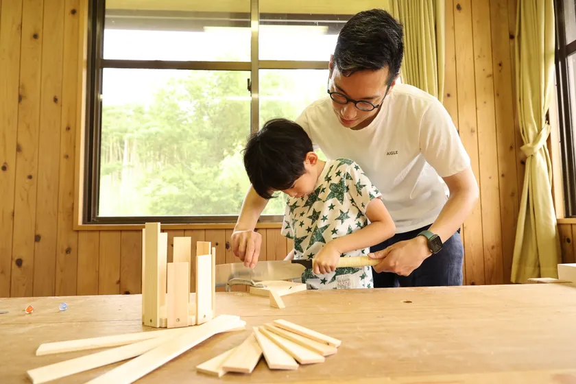 子どもの「ひとりでできた!」を体感できる木工体験。時計やシロフォンを作るプランがあり、夏休みの工作にもぴったりです。子どもの成長を感じられる天然木の身長計もオススメです。