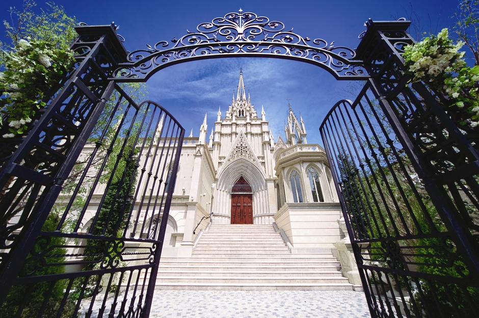 表参道駅から徒歩3分、“恋人の聖地サテライト”※にも認定されているゲストハウスウエディング会場。表参道の街に突如として現れる都内最大級の独立型大聖堂は、130年の歴史を刻むステンドグラスと長さ20mの大理石のバージンロードを有し、ヨーロッパの教会のような荘厳な雰囲気をかもし出します。大階段でのフラワーシャワーの後は、それぞれ魅力の異なる個性豊かな3つの貸切邸宅に移動して披露パーティーを。まるで映画のワンシーンのような、ドラマティックな結婚式が叶います。