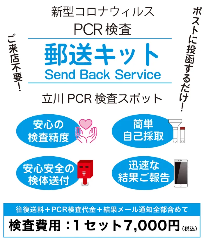 立川PCR検査スポットは、新型コロナウイルスのための 「PCR検査郵送キット」配送サービスを開始いたします。 ~自宅や職場で必要な時にすぐにPCR検査を行えます~