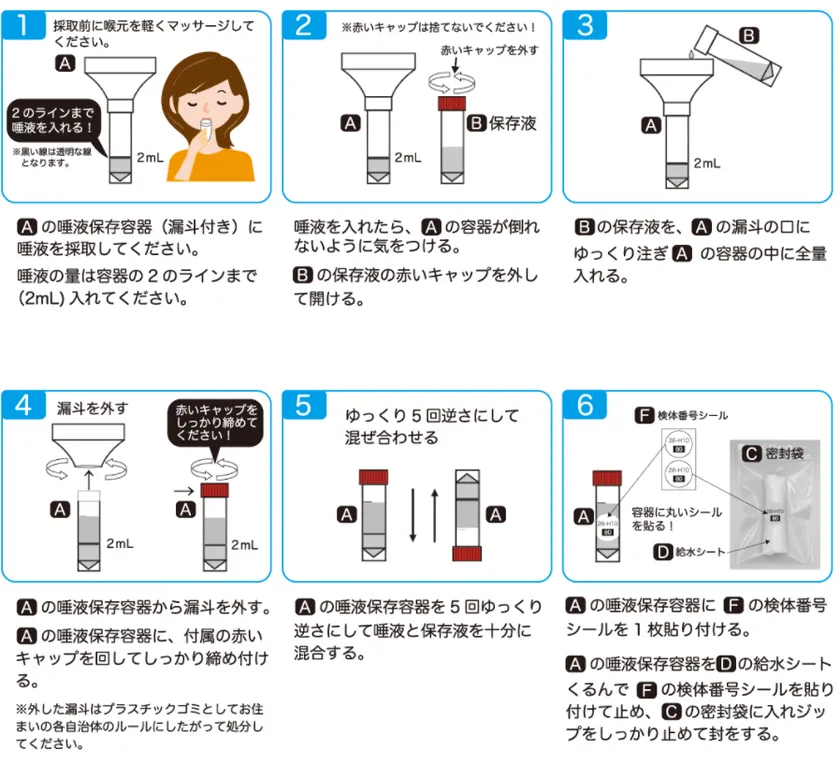 検査キットが届いたら唾液を自己採取して返送ボックスに入れてポスト投函