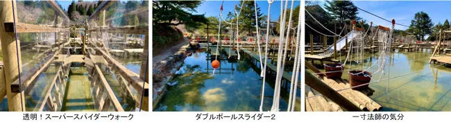 ※3つのアスレチックは小学生以上かつ身長110cm以上、『mecya forest』、『zip slide』は体重110キログラム以下限定です。