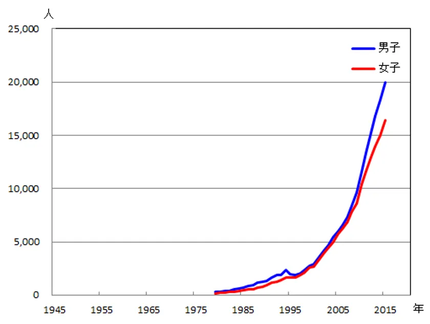 図1 誤嚥性肺炎による死亡者数の年次推移(出典:東京都健康安全研究センターウェブサイト)