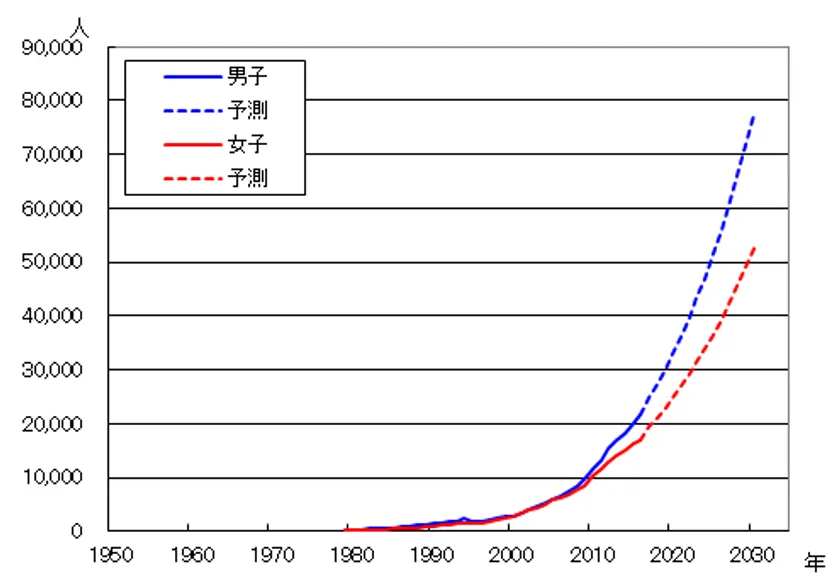 図2 誤嚥性肺炎による死亡者数の年次推移予測(出典:東京都健康安全研究センターウェブサイト)
