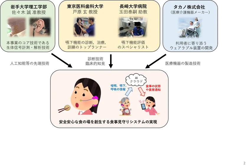 「咀嚼、嚥下、呼吸の協調」に着目した 高齢者用食事見守りシステムの開発を開始 ~岩手大学、東京医科歯科大学、長崎大学、 タカノ株式会社の間で共同研究契約を締結~