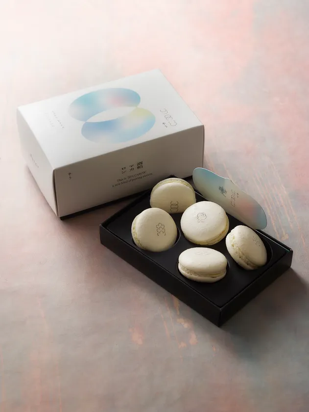 こちらのスペシャルな酒粕に合わせて5つの酒(シュ)カロン(酒粕+マカロン)が誕生しました。しっとりなめらかでフルーティーな酒粕と厳選された素材の組合せはきっと初めて出会うペアリング。
