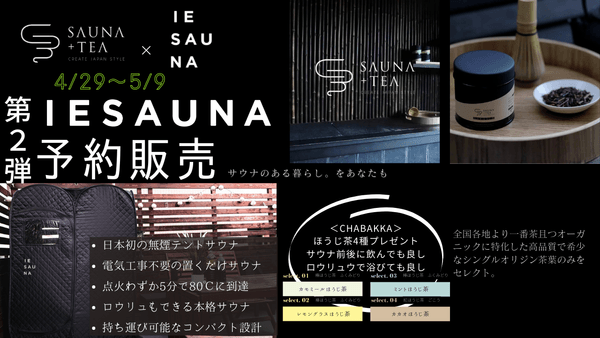 IESAUNA予約販売第二弾!鎌倉の大人気日本茶セレクトショップ『CHABAKKA TEA PARKS』のプレゼントも!!