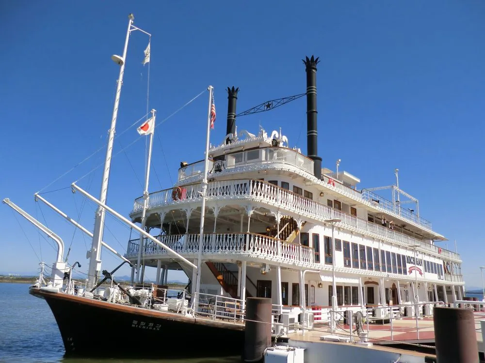 赤いパドルが目印の「外輪船ミシガン」は、びわ湖を代表する大型観光船です。1982年の就航以来、これまでに延べ800万人以上の方にご乗船いただいております(年間乗船客数/約15万人)。最上階デッキからは、びわ湖南部の美しい景色や比叡山・坂本の街並みをご覧いただけます。また、レストランシップとして軽食から本格的なお料理まで楽しめるだけでなく、音楽ライブや観光案内も楽しむことができるエンターテイメントクルーズ船です。