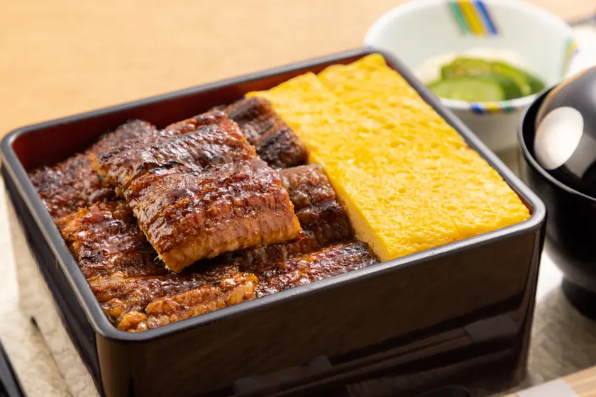 炭焼きした旬の鰻と名古屋コーチンの玉子焼がぎっしりと詰まった登河だけの鰻重。