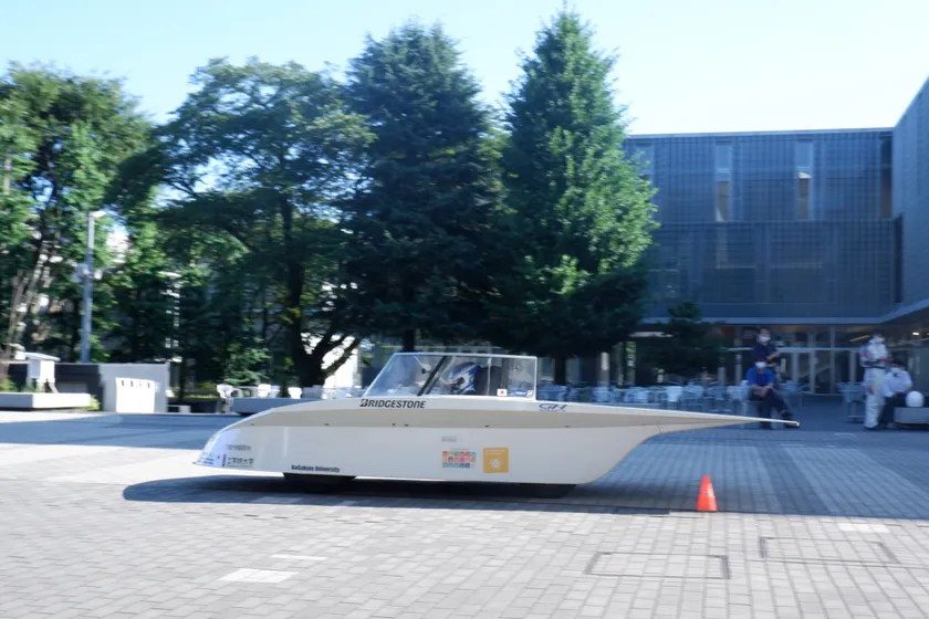 工学院大学ソーラーチーム指導のもと、大学のキャンパス内で試走