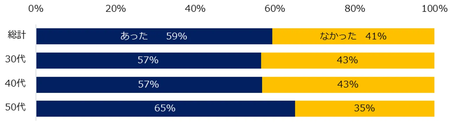 「コロナ禍の前後でキャリア観の変化はありましたか?」と伺ったところ、68%が「あった」と回答しました。年代別にみると、若い世代ほど「キャリア観の変化があった」と回答した割合が大きくなりました(30代:75%、40代:69%、50代:63%)。