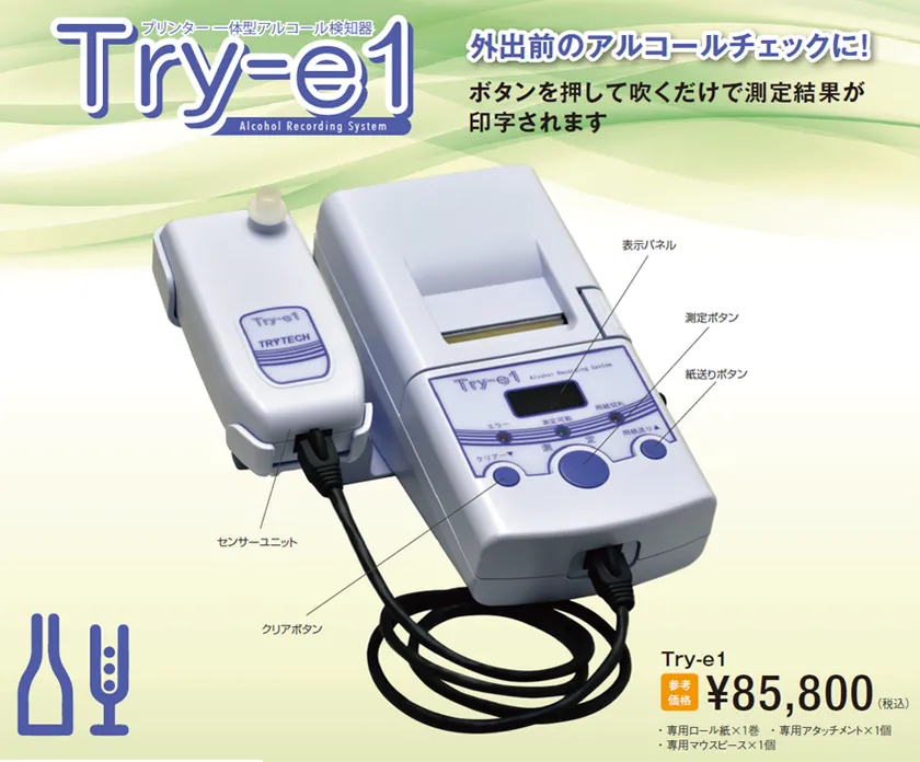 「業務用アルコール検知器Try-e1」を7月から販売開始! ~飲酒運転防止のため必須アイテム~