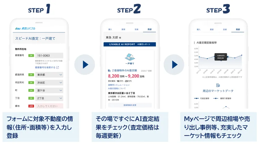 東急リバブル株式会社(本社:東京都渋谷区、代表取締役社長:太田 陽一)は、自社ホームページ上で展開している『スピードAI査定』機能において、これまでマンションに限定していた対象物件を拡大し、一戸建・土地の査定も可能にしましたので、お知らせいたします。