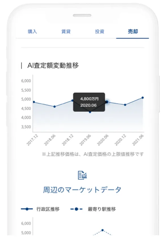 登録(※4)から査定までネット上で、無料で簡単に完結できる上、AIが査定に使用するデータは毎週更新されるため、常に最新の査定価格を確認することができます。また、AI査定結果と併せて売却時に参考となるマーケット情報も掲載していますので、お客様は売却のタイミングや売り出し価格をより具体的にイメージすることができます。