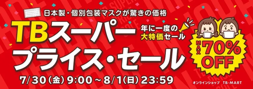 “3日間限定大特価セール開催!” TBスーパープライスセールを開催!大阪マスクなど最大70%OFF