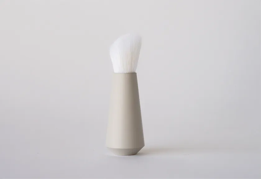 耐久性と速乾性があるPBTと、化粧筆にも使われている素材の中でも毛先が細く癖っ毛のある山羊毛をバランスよく混毛。毛穴よりも細い0.1mmの極細毛が4.7万本も贅沢に使われています。