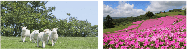 ◆宿から車で約30分に位置するマザー牧場。「花と動物たちのエンターテイメントファーム」のキャッチコピーの通り、羊や牛、馬など可愛らしい動物と身近に触れ合うことができます。9月末まではペチュニアを品種改良した35,000株もの「桃色吐息」が山肌をピンク色に染める圧巻の美しさを楽しむことができる、ファミリーにぴったりなスポットです。