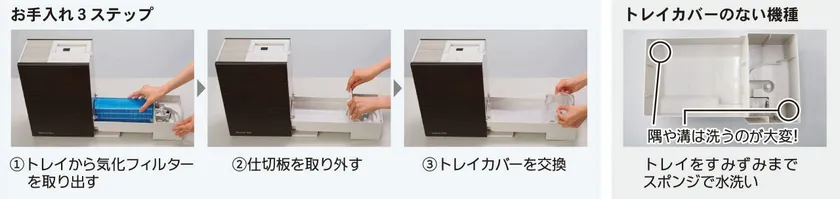 ・お手入れは、トレイカバーを交換するだけの3ステップ。