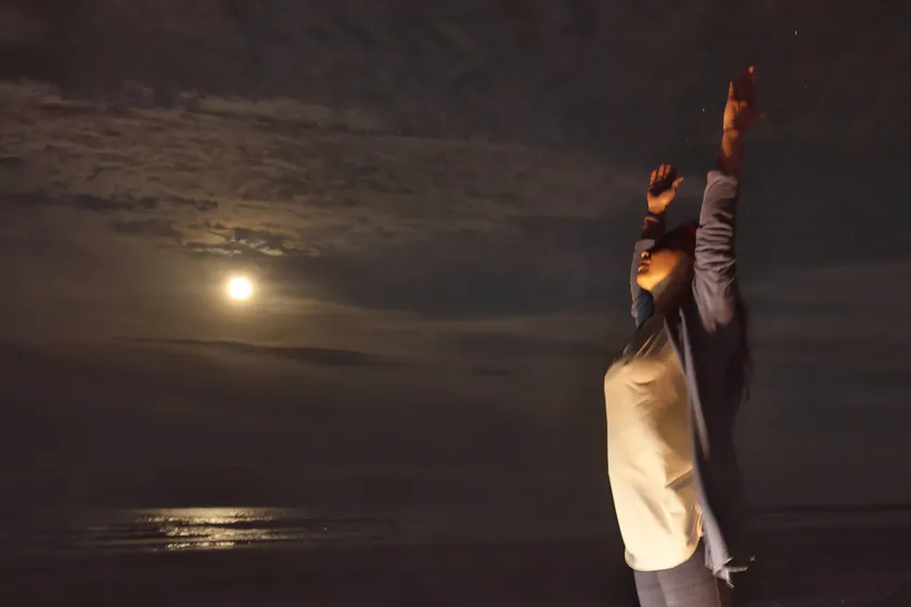 フルムーンビーチヨガの様子(新月は真っ暗なので参考画像がありません)