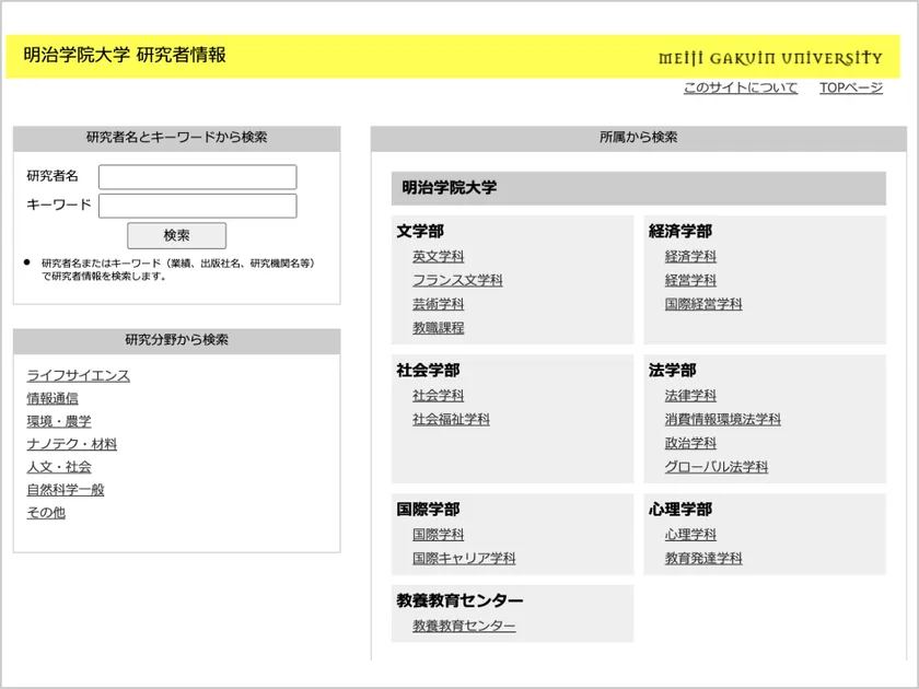 「研究者情報」ページ