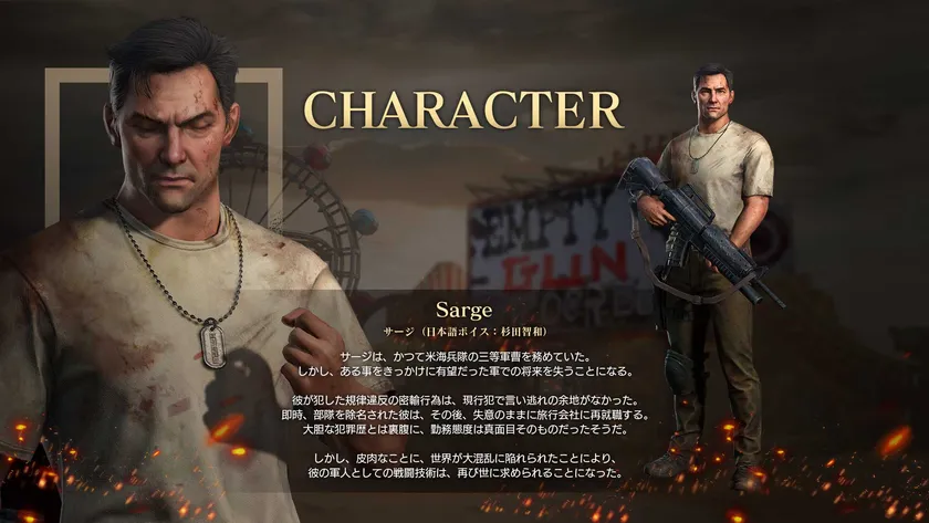 悲しみの過去と葛藤に悩む元軍人「サージ」(CV:杉田智和)