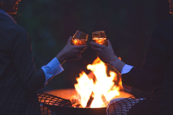 ゆらめく炎を囲み、ウィスキーやワインなどを片手に夜のひとときを過ごせます。