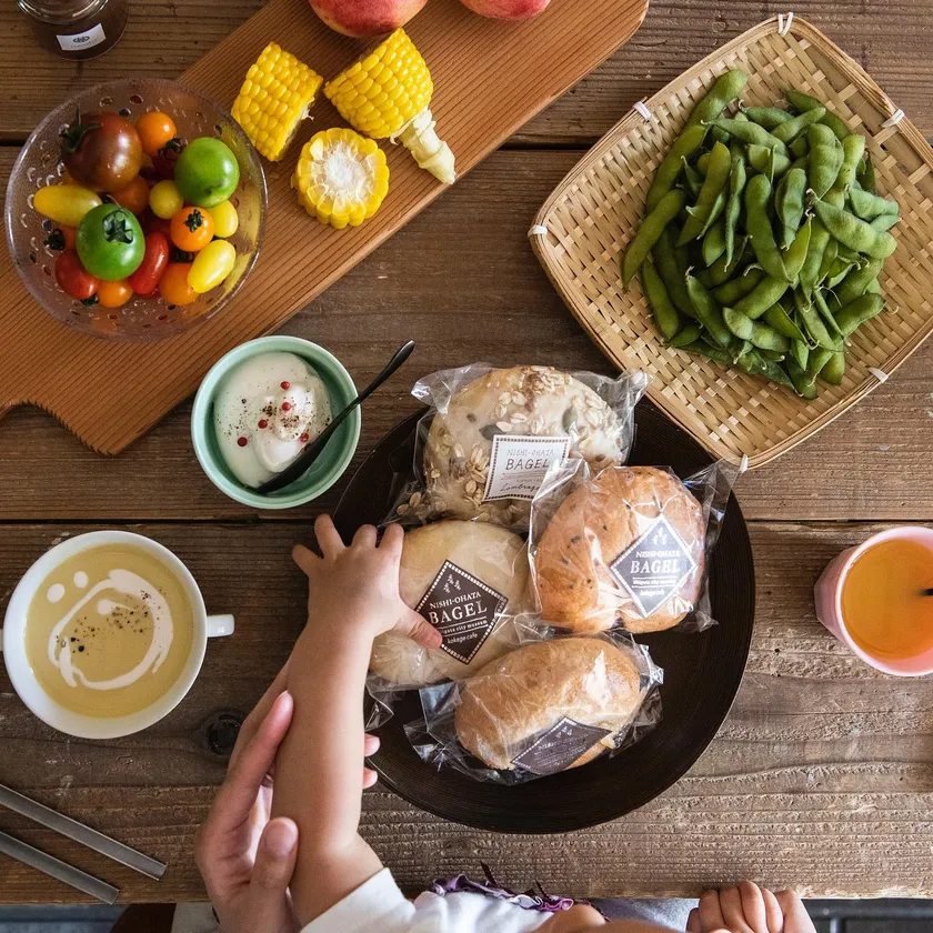 看板商品の『西大畑ベーグル』は新潟市江南区の障がい者福祉施設「メイプル・ぷらす」と製造し障がい者雇用にも取り組んでおります。