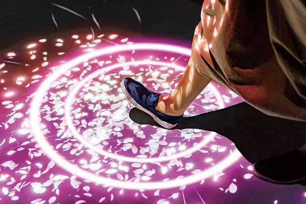 桜色にライトアップされた木々を間近に眺めながら巡る、ナイトウォークエリア。“光の桜”に包まれる幻想的な世界に誘います。