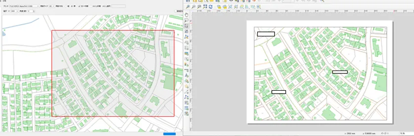 機能概要:用紙サイズ、縮尺を指定して地図印刷を行うことができます。
