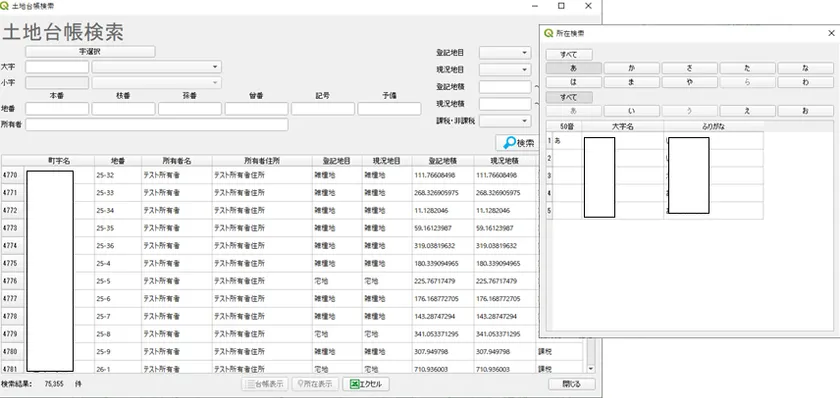機能概要:字名と地番から地図上の位置を検索することができます。