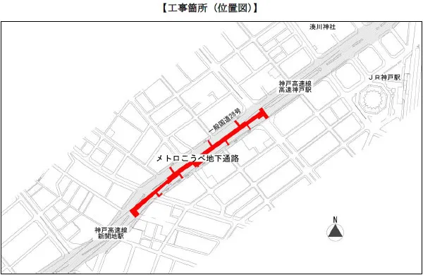 この美装化工事は、国土交通省の都市構造再編集中支援事業として、国及び神戸市からの補助を受けて実施します。