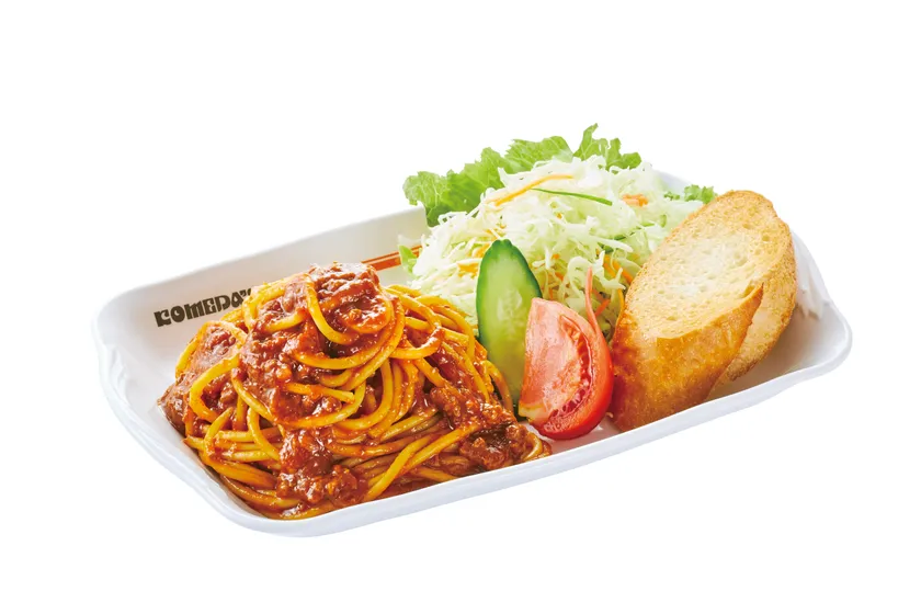 スパゲッティの定番!大人から子どもまで楽しめるビーフと野菜の旨味がぎゅっと詰まったミートスパゲッティです。ミートソースは、ひき肉に6種類の野菜、4種の香り豊かなスパイスを加えてじっくり煮込んだコメダオリジナル!