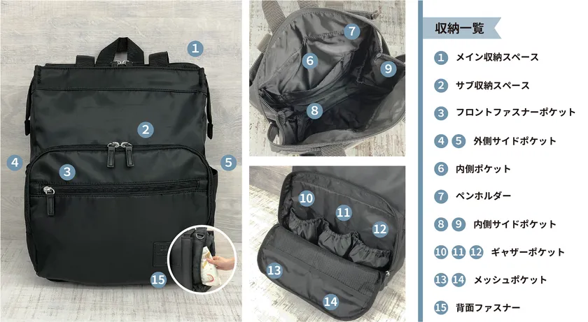 <収納機能は全15個!必要なモノがキレイに入る大容量>